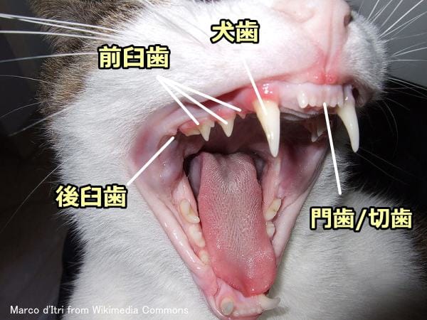 ネコちゃんの歯を見てみると、犬歯が極端に多きいのがわかると思います。