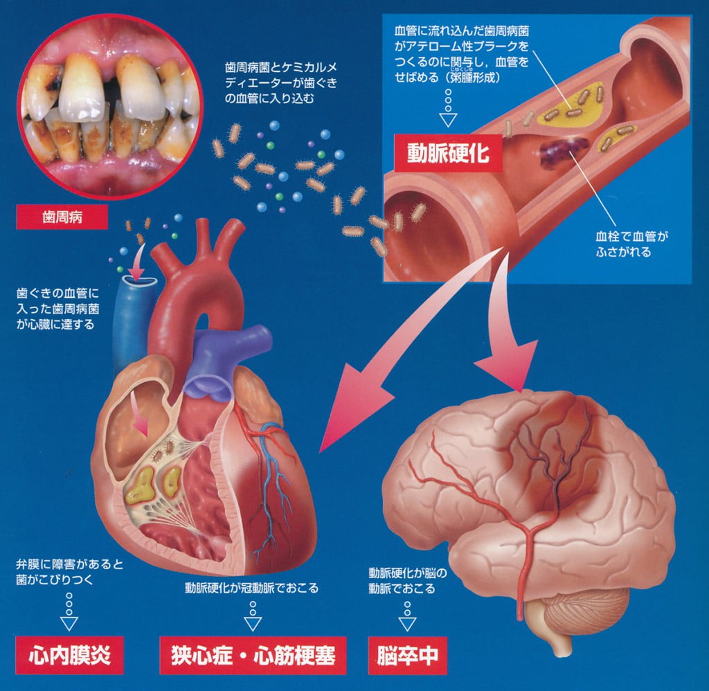 むし歯や歯周病の原因菌は血中に入り込み、知らぬ間に全身をむしばみます。目に見えなく健康診断でも見落とされますので、原因となる細菌は除去することが病気の予防となります。つまり黒くなってしまっている根は抜歯する必要があります。