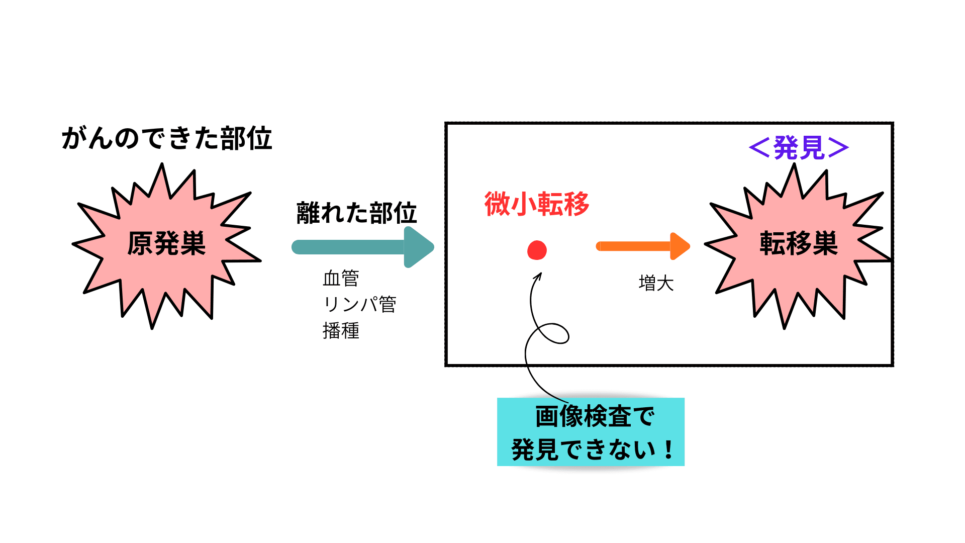転移:検査で見つからなかった微小な転移が大きくなって発見