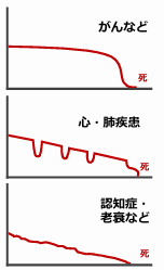慢性疾患の終末期の経過 典型的な3つのパターン