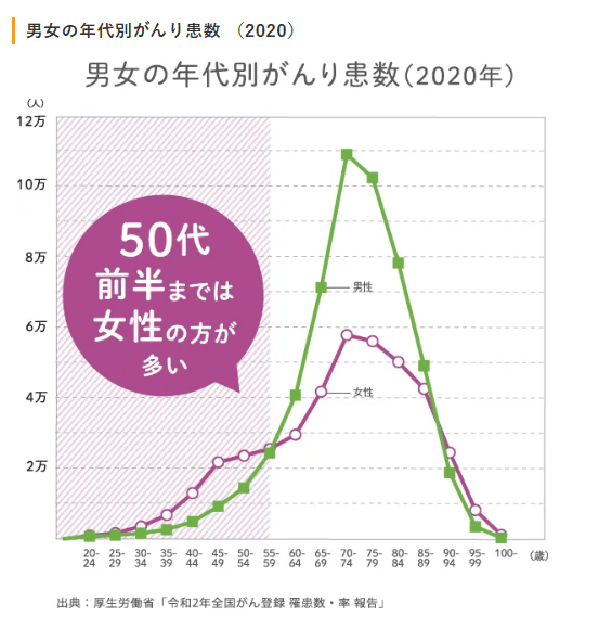 ・男性は60代から急増し、女性を追い越す。