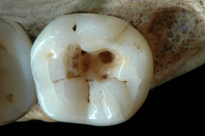 旧石器時代としては、北イタリアで発見された14,000年前の歯には外科的なむし歯治療の痕跡が見つかっています。