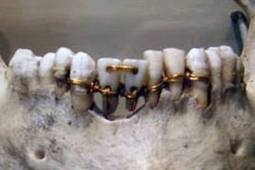 プトレマイオス朝のエジプトでは、自分の抜けてしまった歯を針金などを使い固定することで利用していた痕跡があります。