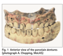 型をとることが技術的に不可能だったため、これらの義歯は金属や絹の糸で周囲の歯に結びつけるのが普通で、あまり使い心地は良くなかったそうです。