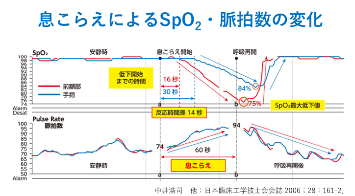 - 息ごらえによるSpO2低下は30秒経過後に生じる。(すぐではない)