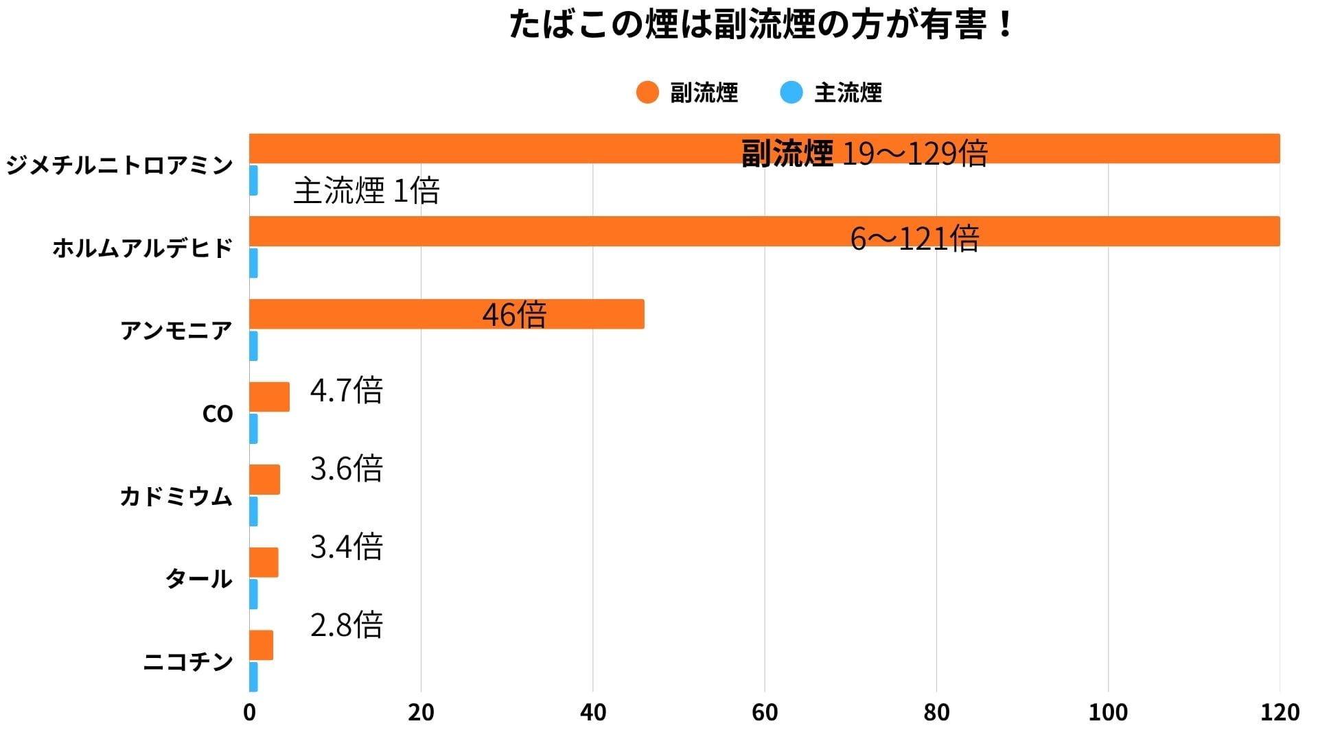 副流煙は主流煙より有害です!