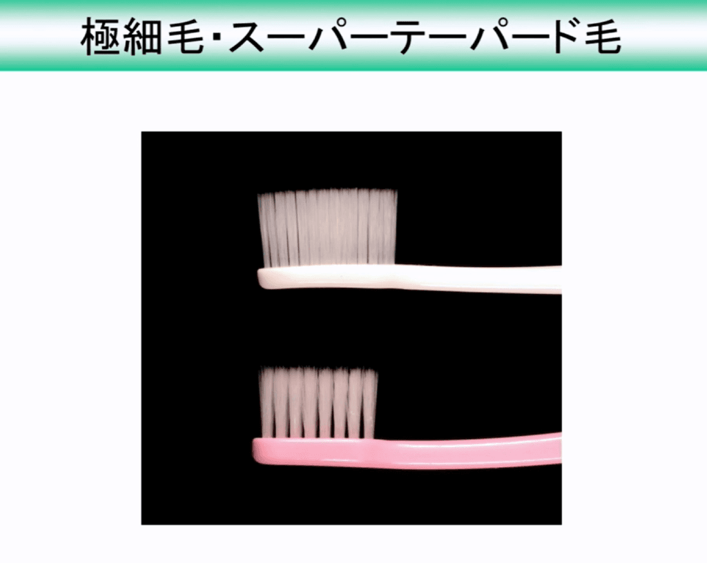 ◦極細毛は細部到達性が良く、歯周病の方には基本的にオススメなんですが、力を入れすぎなくても先端が摩耗してしまうため、1カ月程度で交換する必要があります。