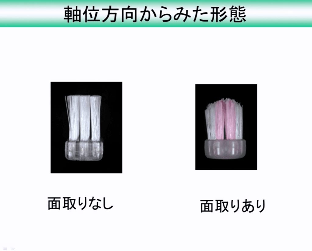 毛の角度を互い違いにしたタイプは、歯間部への到達性をアップするための工夫となります。